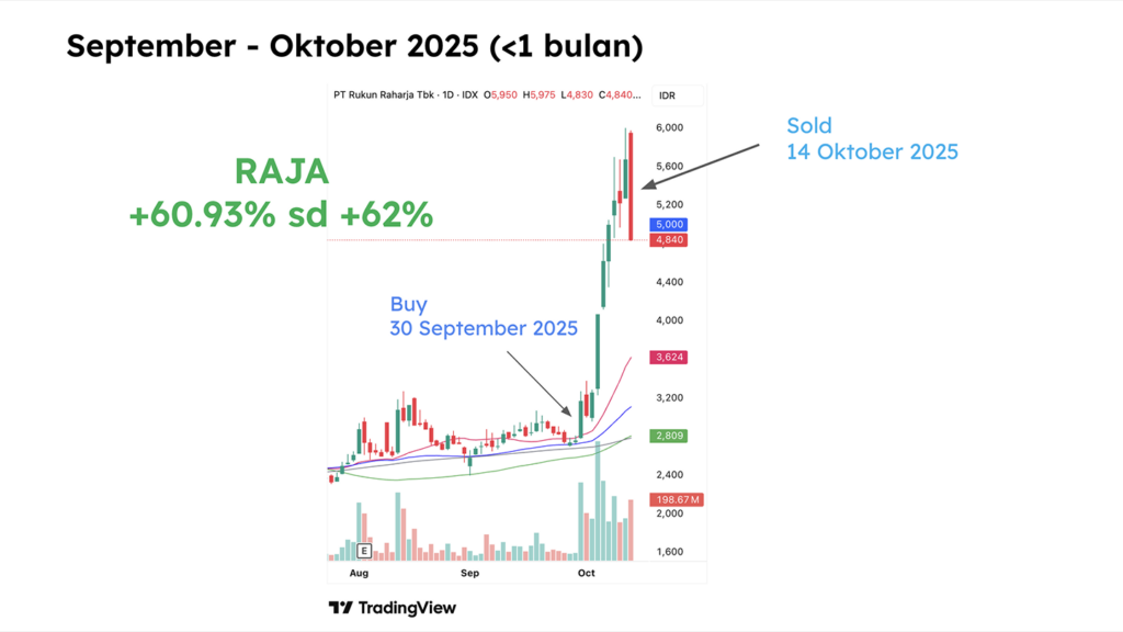 Strategi Super Trader terbukti efektif mencetak profit dari saham multibagger (cuan puluhan % hingga ratusan %). Dalam workshop ini, kamu juga akan mempelajari studi kasus nyata dari berbagai instrumen seperti saham Indonesia, saham US, crypto, emas, dan forex. Disertai case study nyata bagaimana strategi diterapkan, diuji, dan dievaluasi dalam kondisi market yang sesungguhnya.